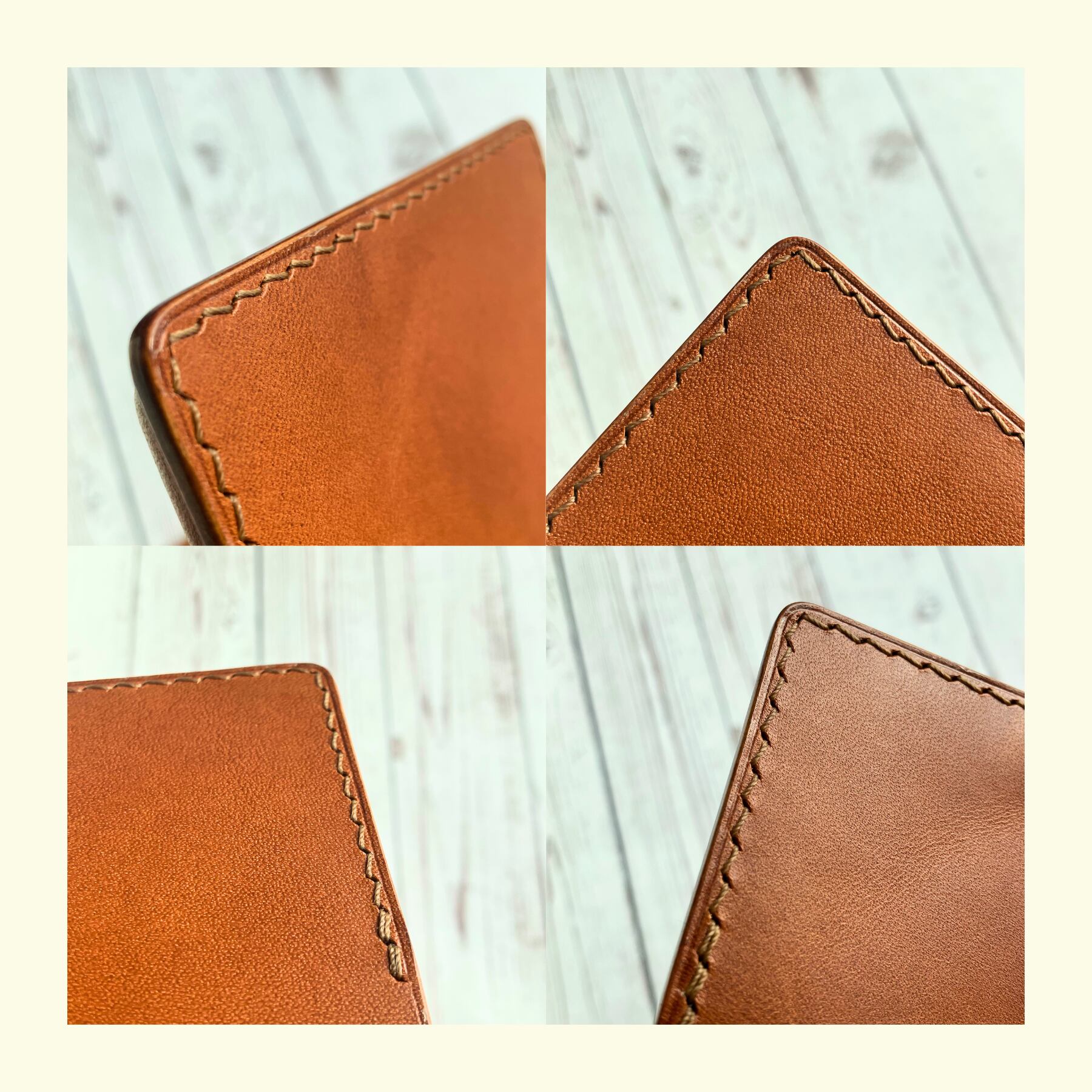<作品のこだわり コバ(革の断面)の仕上げ>