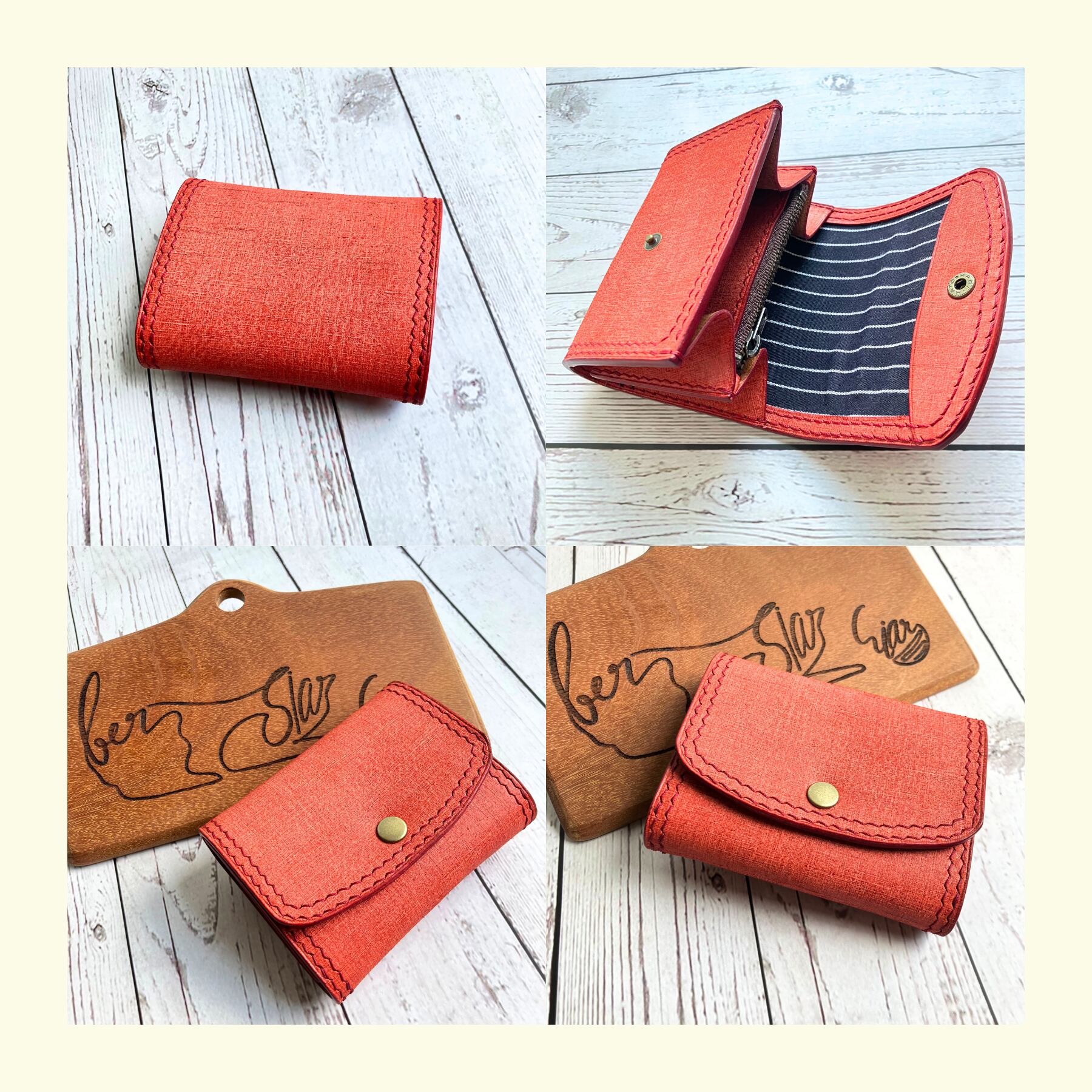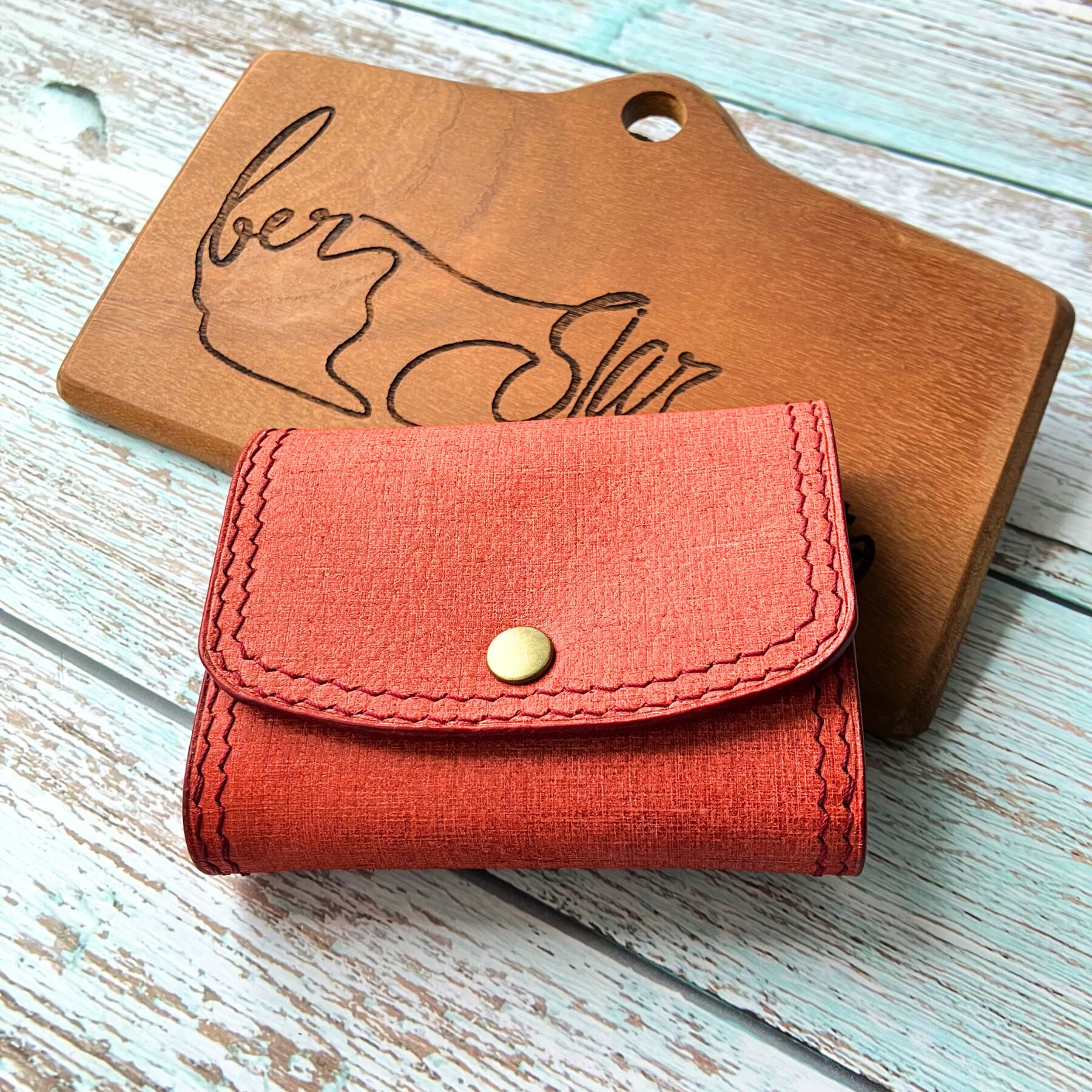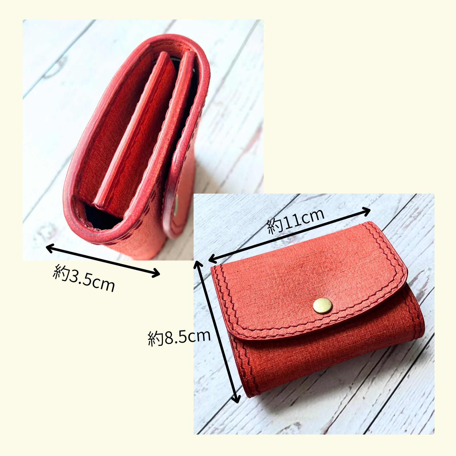 コバ(革の断面)は全て水性染料による赤染め仕様です。