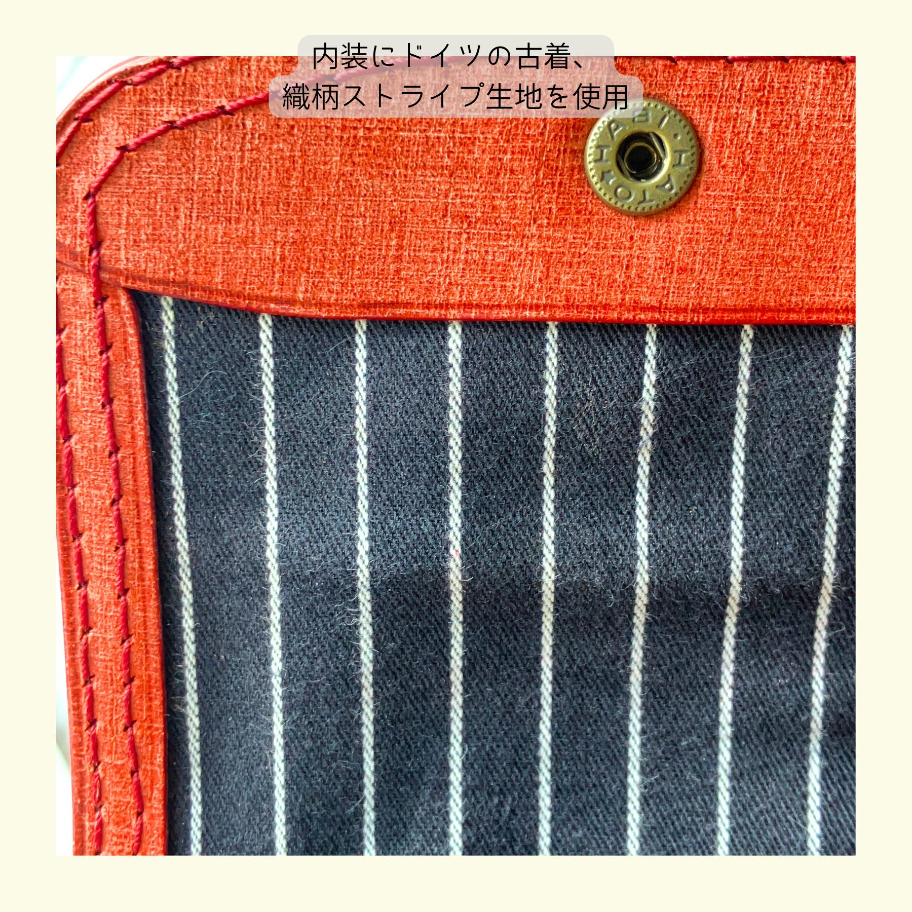 裏地:ドイツ産織柄ストライプの綿(洗濯済古着)、紺&白